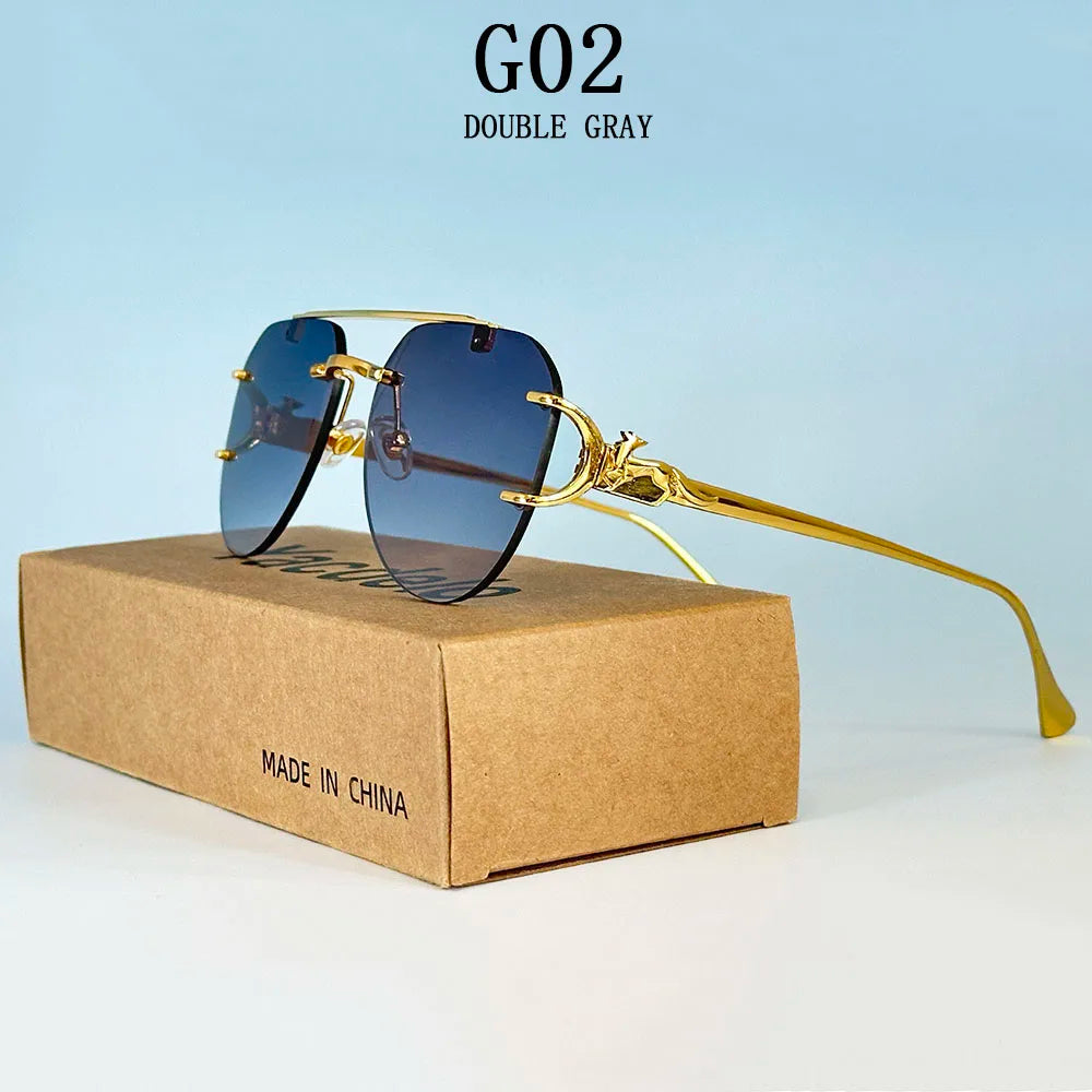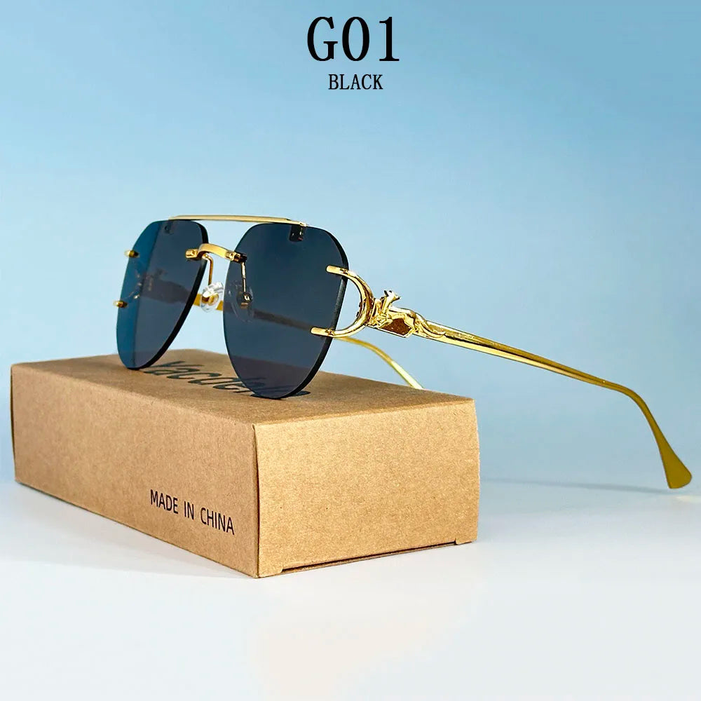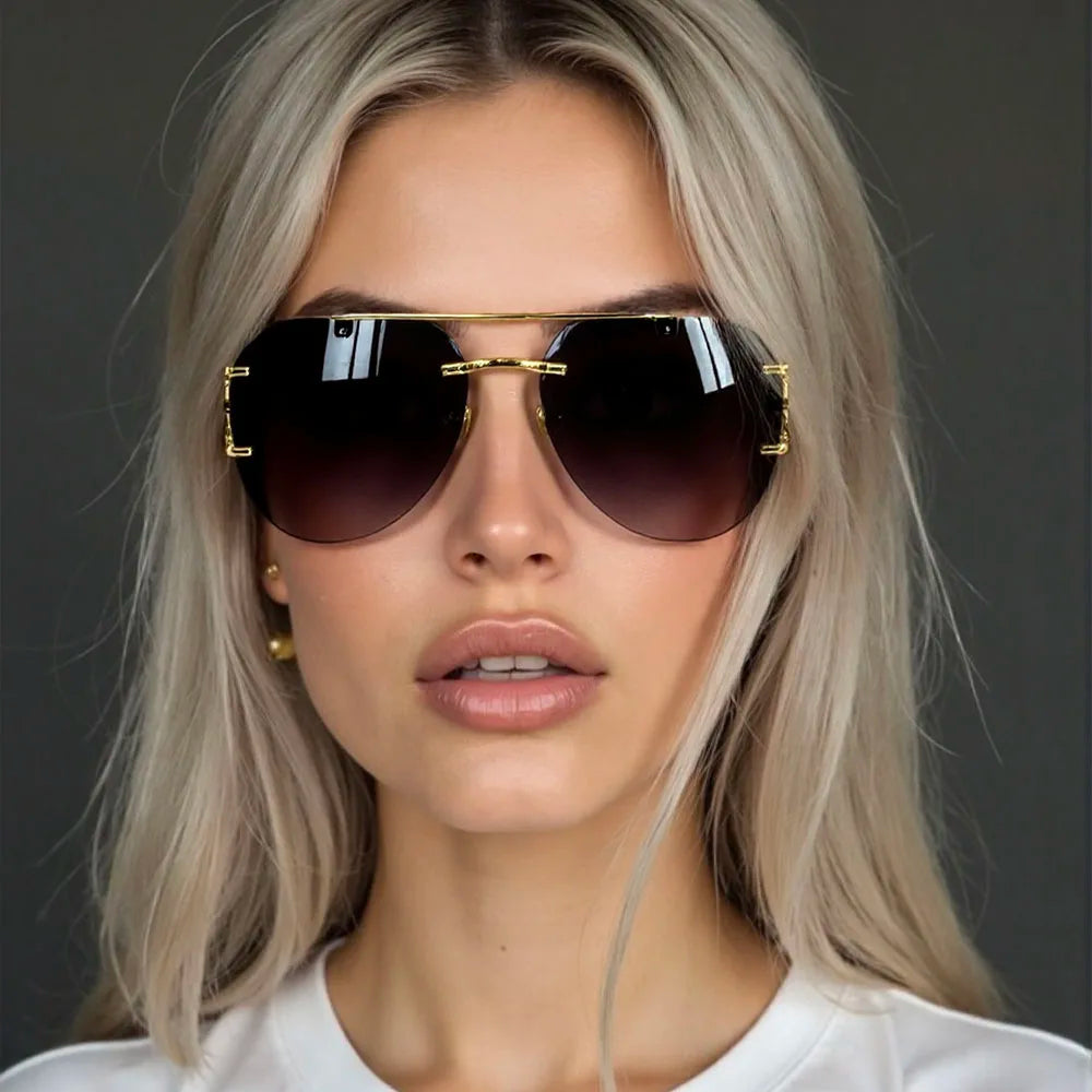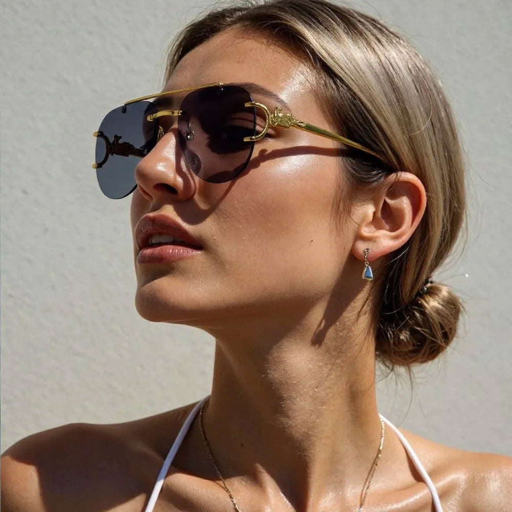 The rimless oval shape of these sunglasses adds a vintage touch, making them a stylish accessory for any outfit.