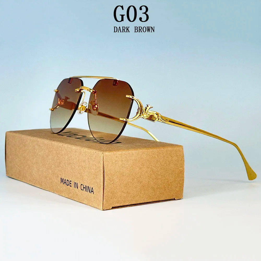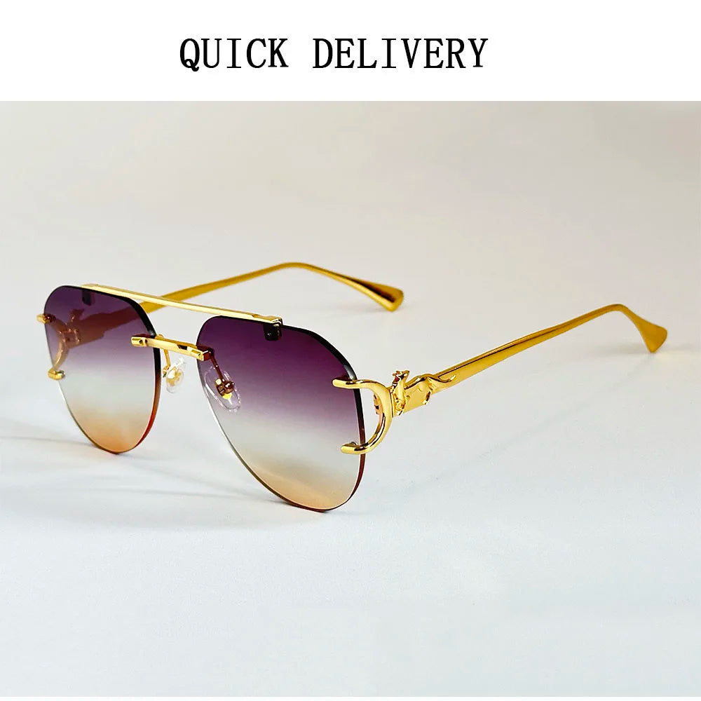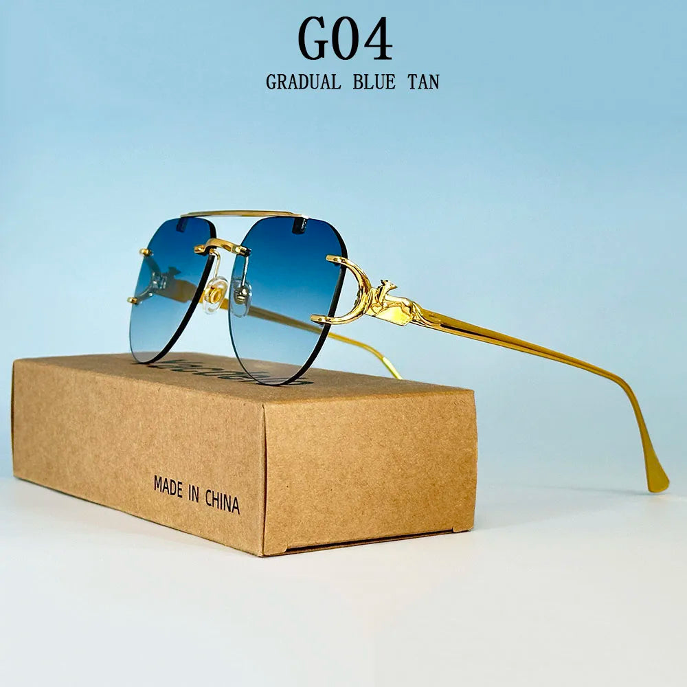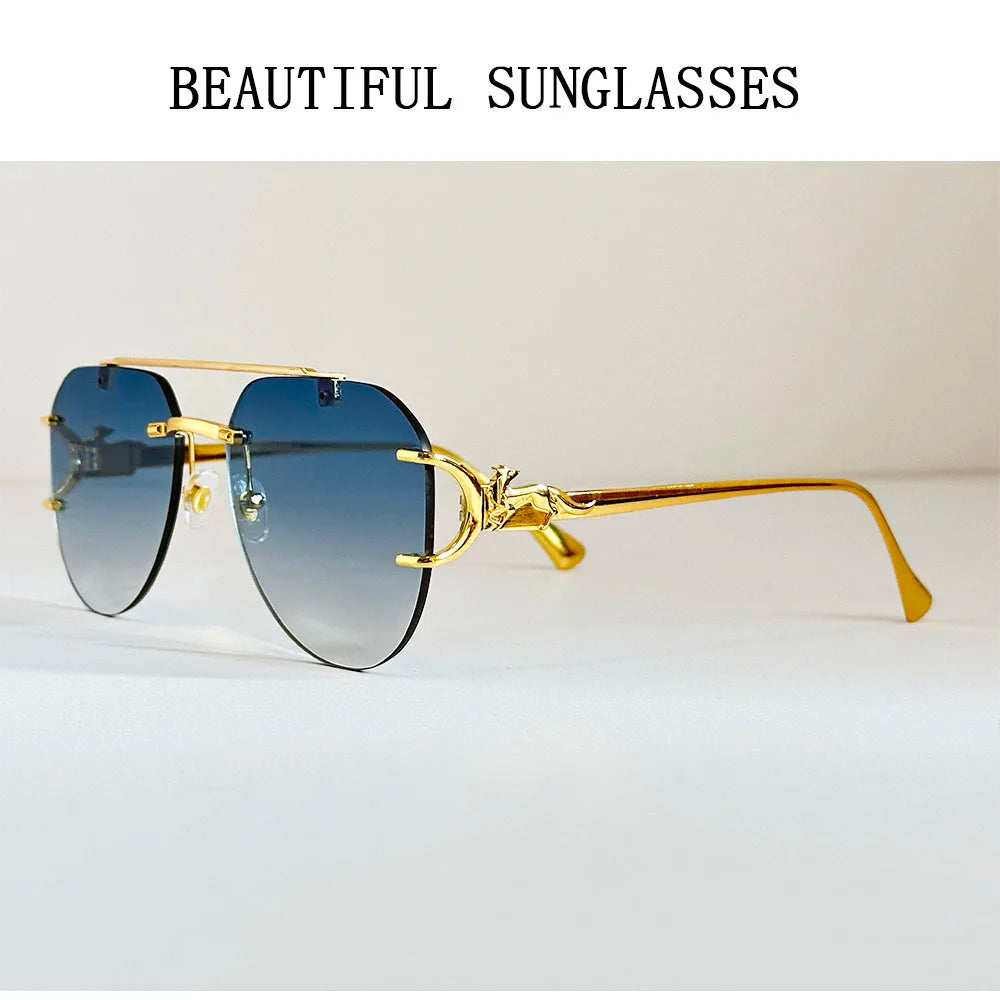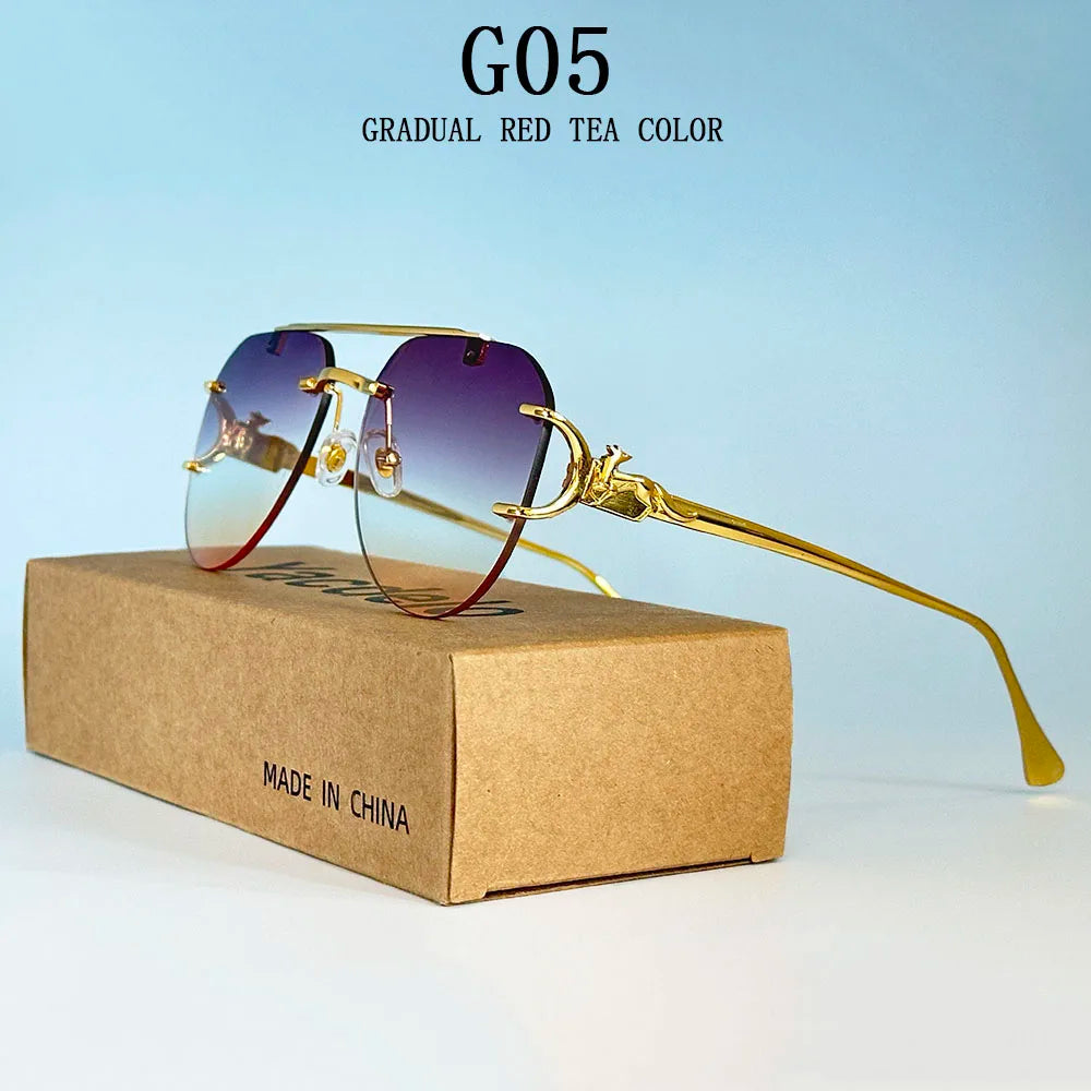 The rimless oval shape of these sunglasses adds a vintage touch, making them a stylish accessory for any outfit.