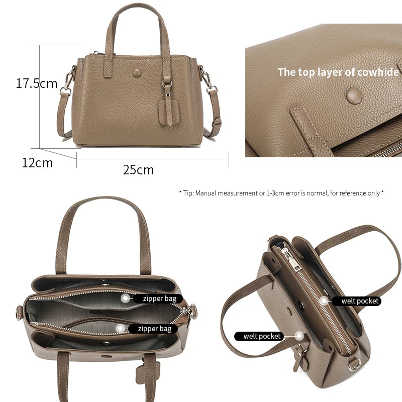 1.Cowhide Genuine Leather Material,Crafted from premium cowhide, this shoulder bag offers durability and a luxurious feel.