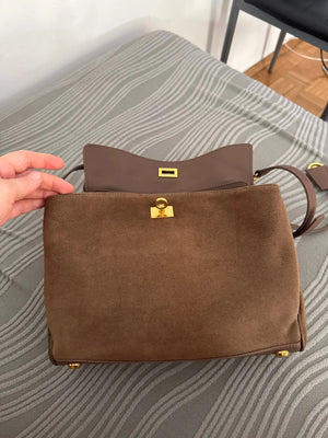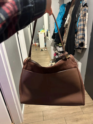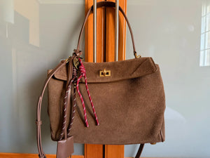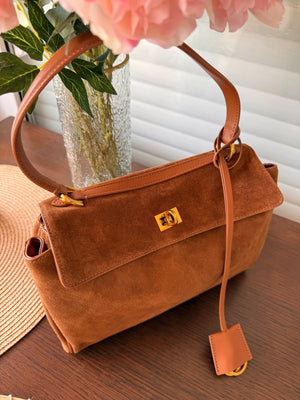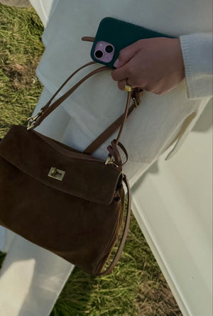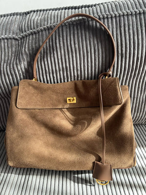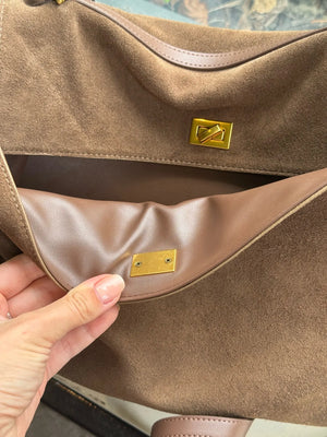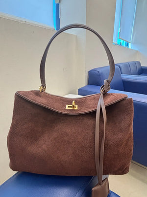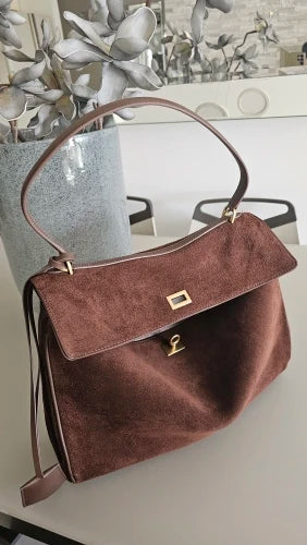Crafted from genuine suede leather, the tote is built to withstand daily wear and tear while maintaining its elegant appearance.