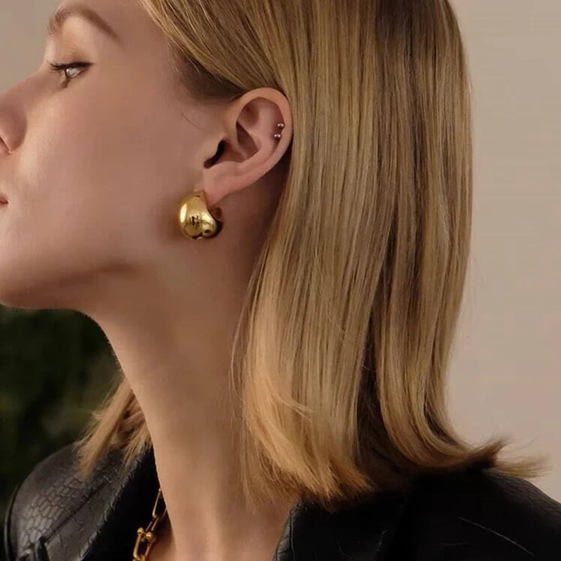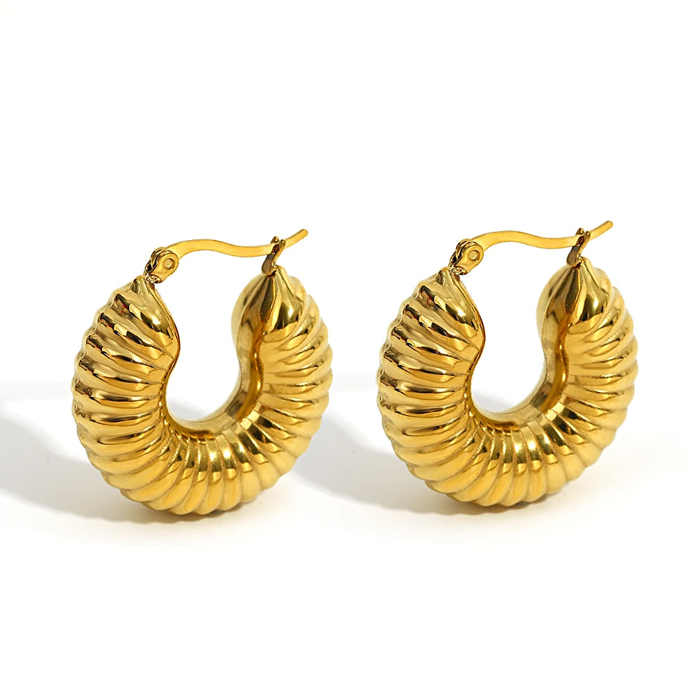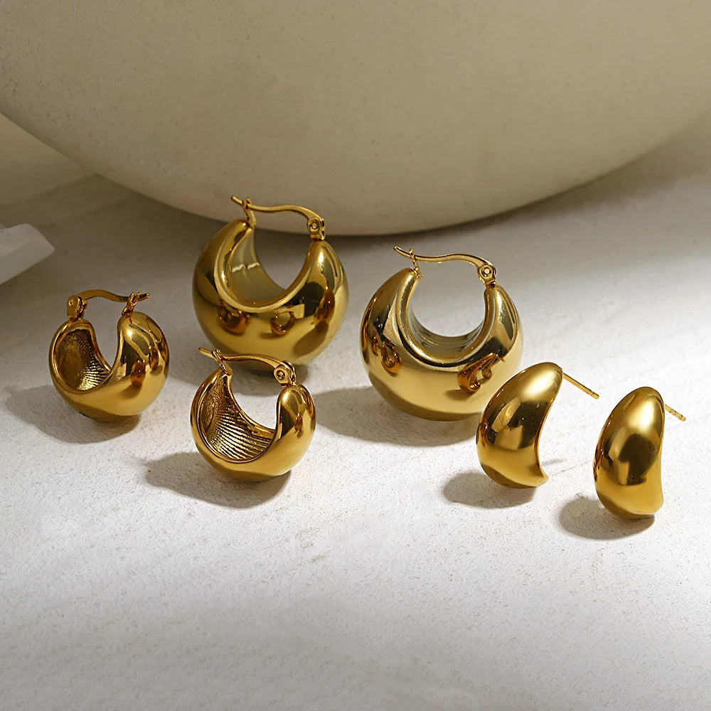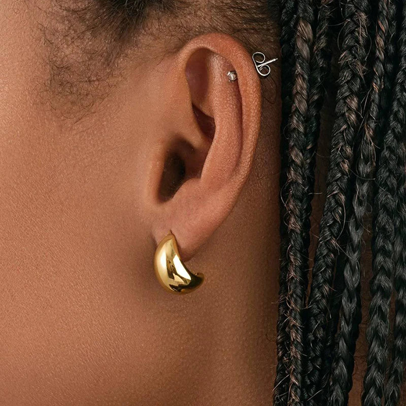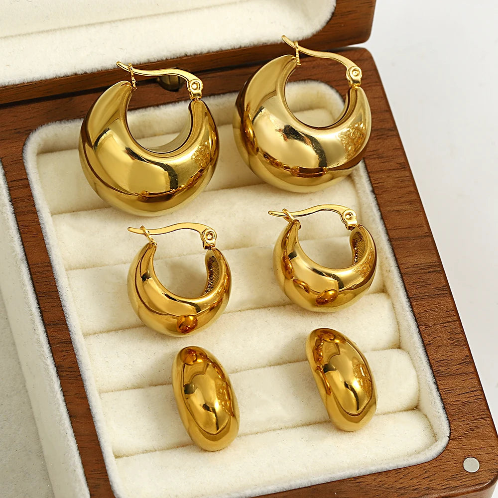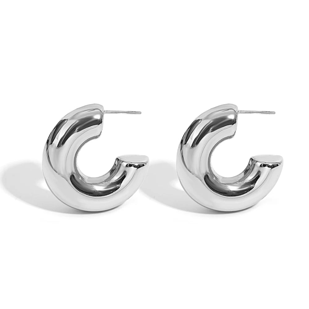 As: Chunky Hoop Earrings ,Thick C-shape Earrings, Stainless Steel Earrings