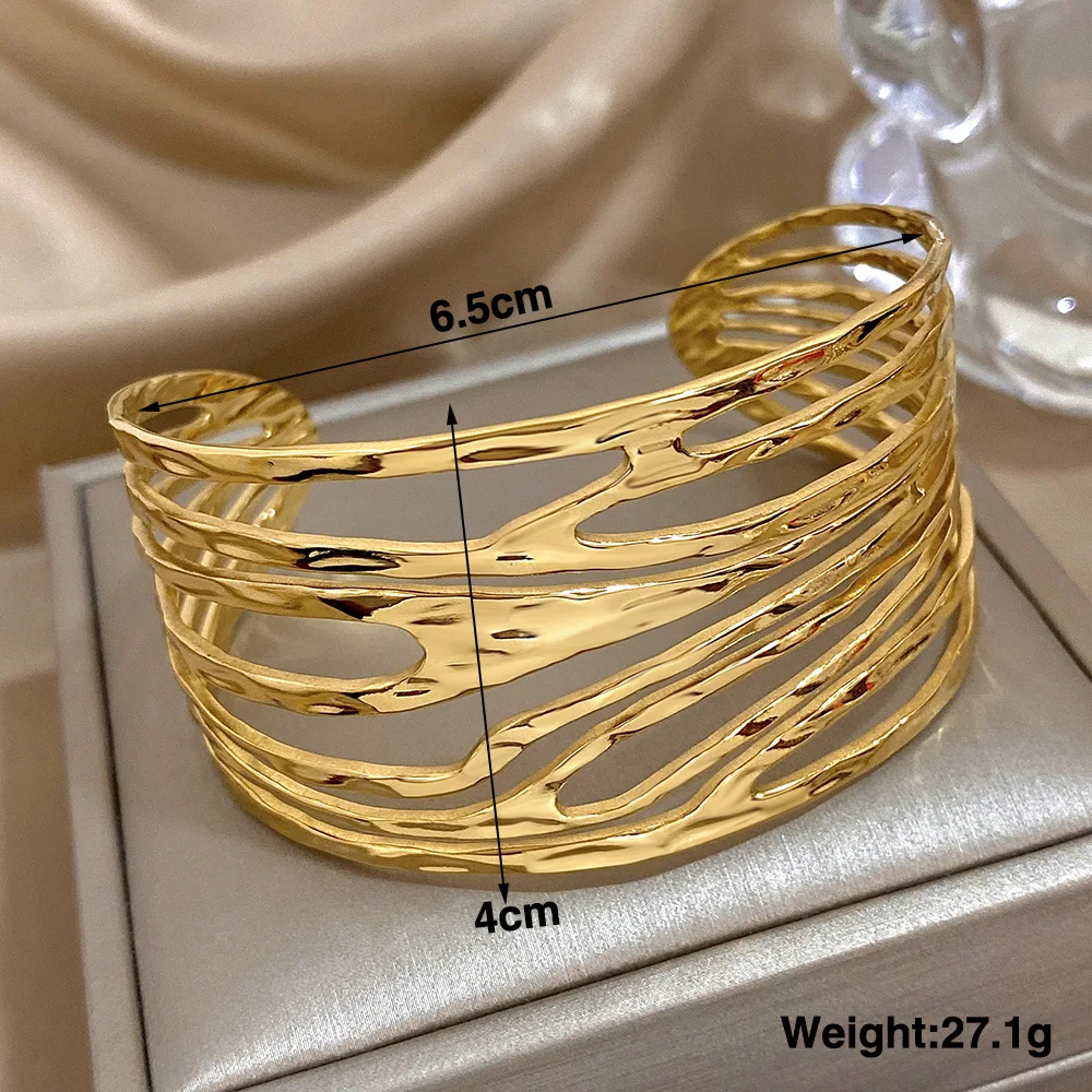 Irregular Geometric Hollow Stainless Steel Cuff Bracelet Exaggerated Gold Silver Color Wide Open Bangles Waterproof Jewelry